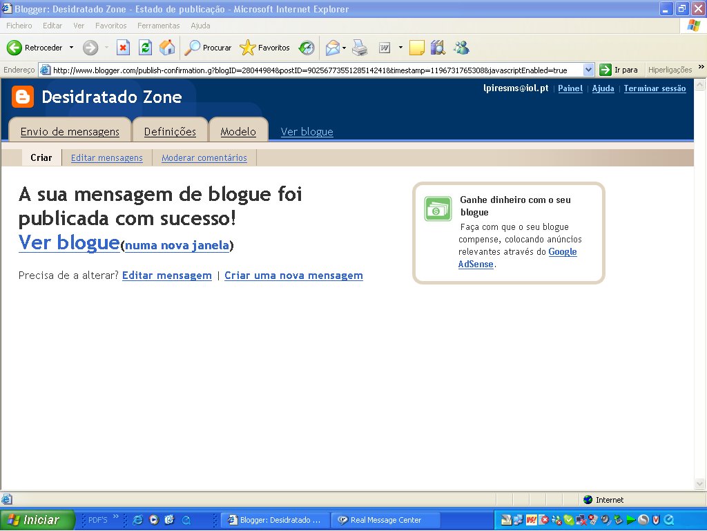Mas como é que a piada pode ter sido publicada com sucesso se ainda ninguem a leu? A minha fama não é assim tanta....